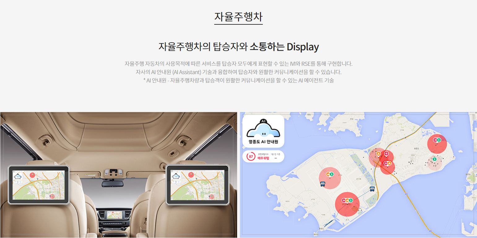 그 결과 고객과의 신뢰와 믿음을 통해 다양한 사업분야를 확대 하였으며 성장과 함께 Automotive Human Machine Interface 기술을 바탕으로 4차 사업혁명과 관련된 커넥티드 카, IT솔루션, IoT 등 연구개발, HUD, Dashcam 등을 통해 자율주행차량 시대를 준비하고 있습니다.
