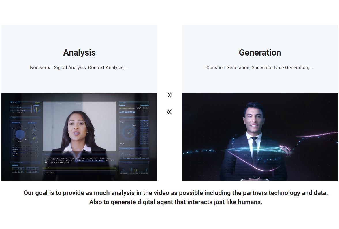 저희의 목표는 파트너의 기술과 데이터를 포함하여 비디오에서 가능한 한 많은 분석을 제공하는 것입니다. 또한 인간처럼 상호작용하는 디지털 에이전트를 생성합니다.