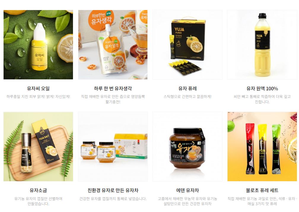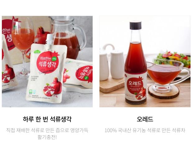 맑고 깨끗한 자연환경을 갖추고 있는 전남 고흥에서 친환경 유기농석류와 무농약유자를 직접 재배하여 고객님들이 안심하고 즐길 수 있는 행복한 먹거리가 될 수 있도록 친환경 원료로한 가공식품을 생산하고 있습니다.