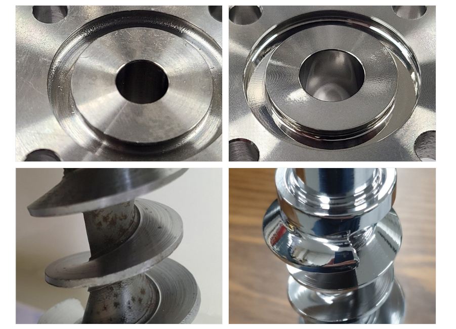 NOV 연마재는 가공면의 표면을 타고 흐를 때 말랑말랑한 성질의 연마재가 형상의 모량에 상관없이 그 형상을 타고 흘러 가공품의 모서리, 공차를 최소화하여 가공이 가능한 특징을 가지고 있습니다.
