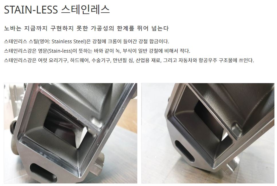 순수 국내 기술로 개발되었으며, 다수의 업체에서 탁월한 가공성을 인정받았습니다. 노바 연마재는 수가공으로만 가능한 공정을 누구나 쉽게 할 수 있도록 만들어 졌으며, 연마재의 내구성이 뛰어나 블라스터, 드래그 장비를 사용하여 자동화가 가능합니다.