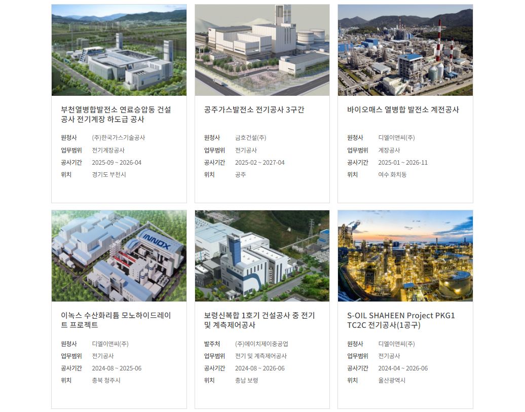 카타르에서는 1억 불이 넘는 국립병원 전기공사를 준공하였고, 폴란드, UAE, 사우디 등에서는 석유화학 플랜트 전기공사를, 인도네시아에서는 자동차 공장 전기공사, 방글라데시에서는 국제공항 전기공사를 수행하는 등 15여 개 국에서 9.1억 불이 넘는 현장을 운영하고 있습니다.