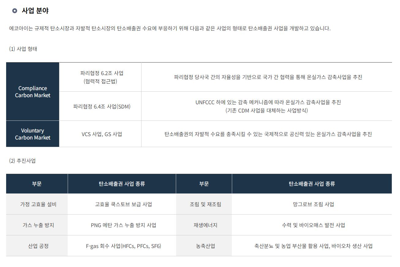이렇게 급변하게 변화하는 환경 속에서 당면현안을 해결하기 위해서 ㈜에코아이는, 기후변화 관련 비즈니스 선두주자로서 교토 메커니즘의 원리인 CDM(CLEAN DEVELOPMENT MECHANISM)사업, 배출권거래(EMISSION TRADING), 기업중심의 지속가능경영 및 탄소경영 시스템 구축 에너지 진단 및 ESCO 사업, 지속가능디자인 및 환경 IT와 접목되는 스마트 그리드 사업 등 서비스를 제공하고 있습니다.