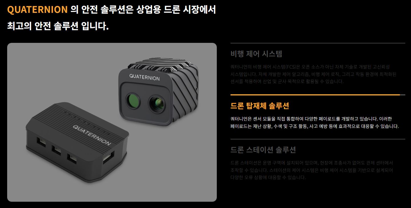 쿼터니언은 센서 모듈을 직접 통합하여 다양한 페이로드를 개발하고 있습니다. 이러한 페이로드는 재난 상황, 수색 및 구조 활동, 사고 예방 등에 효과적으로 대응할 수 있습니다.