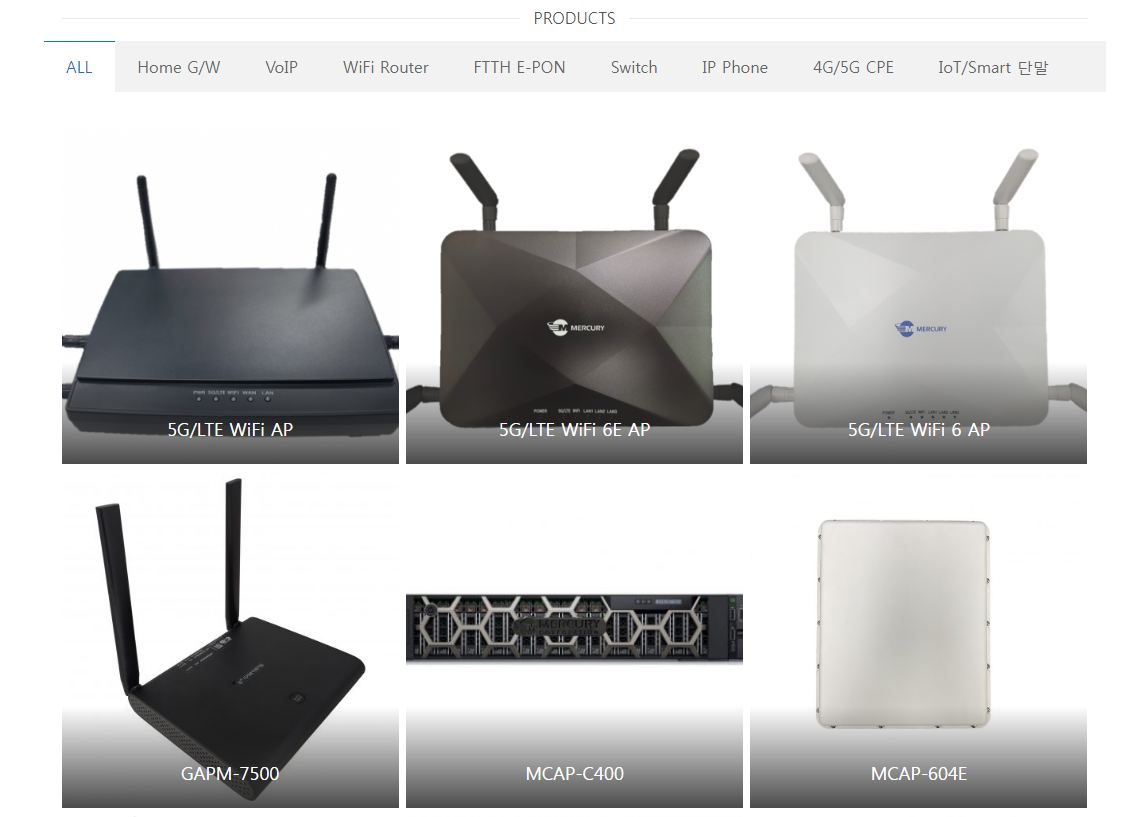 머큐리는 시장을 선도하는 기술력으로 다양한 신규제품을 출시하고 있으며, 특히 글로벌 시장을 확대하기 위하여 광케이블은 물론 AP장비 및 AI스피커를 포함한 다양한 IOT관련 제품의 해외시장 개척에 전력을 기울이고 있습니다.