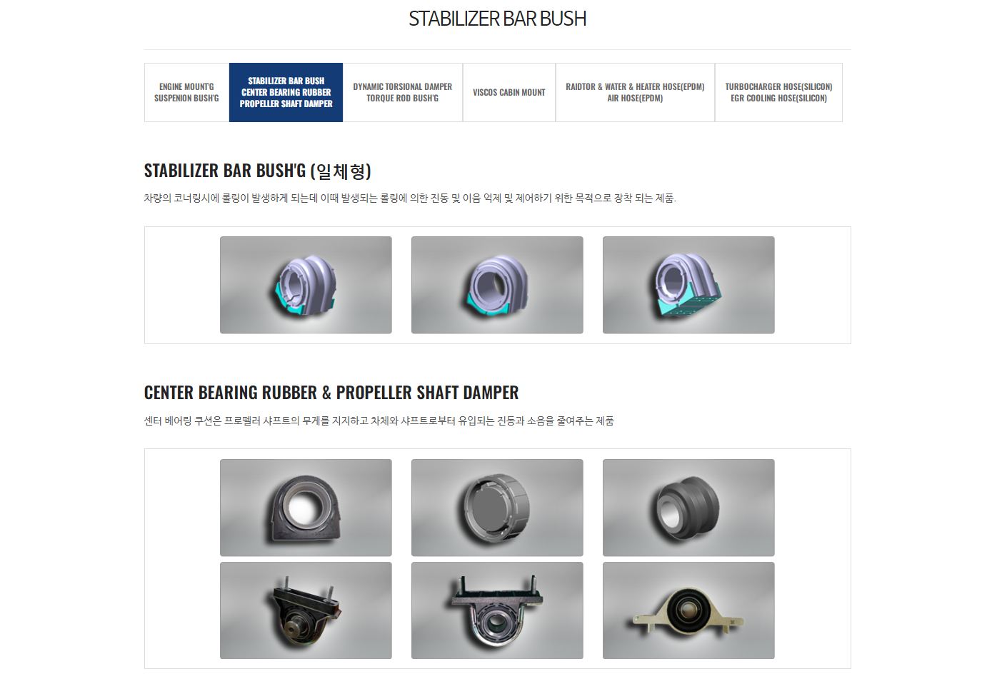 SUSPENSION BUSH, TORQUE ROD BUSH, VIBRATION DAMPER등과