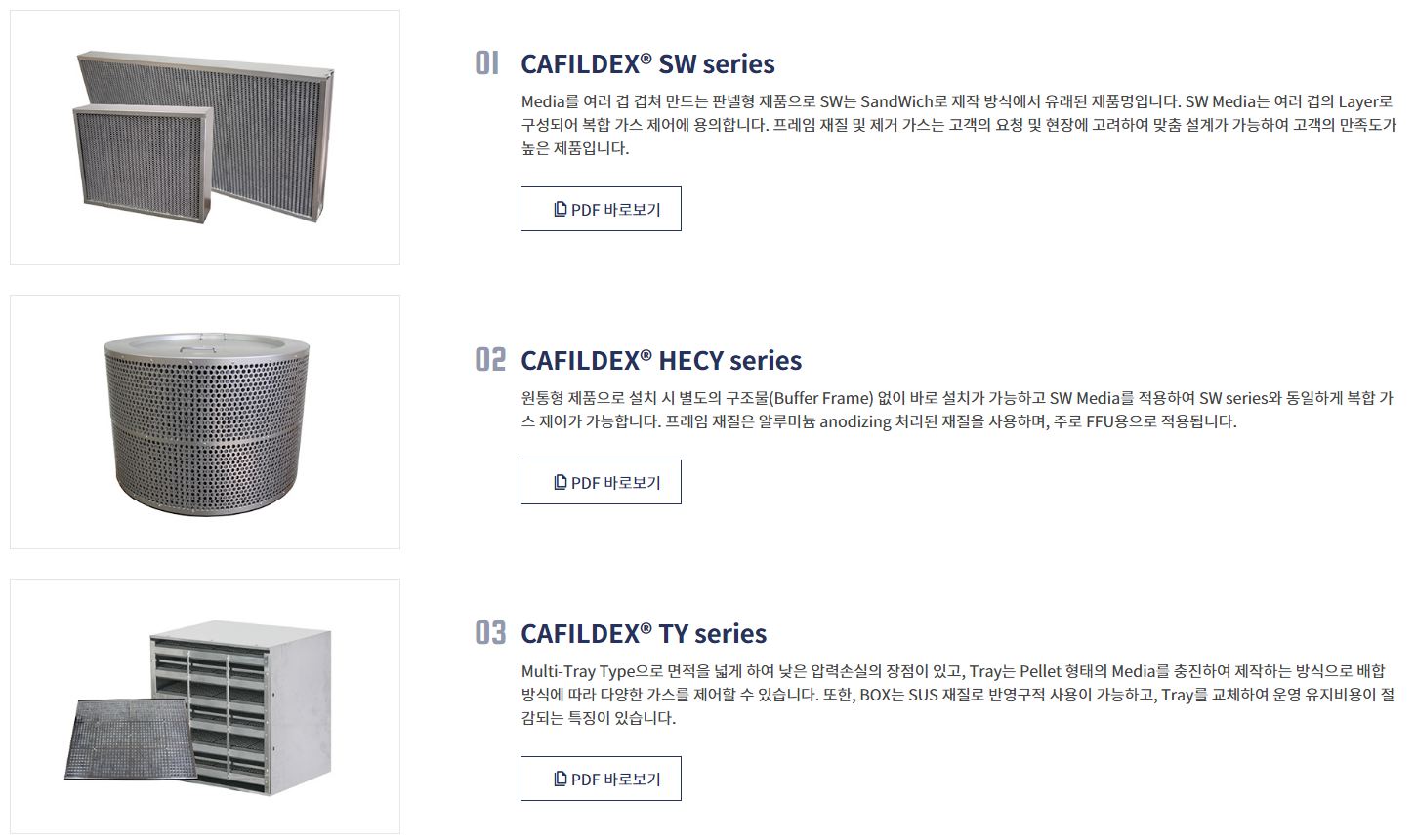 클린룸 케미컬 필터 - 반도체와 디스플레이 공정의 클린룸 내부에서 발생하는 유해가스 제거