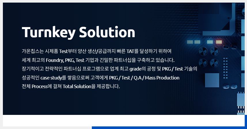 가온칩스는 삼성 파운드리의 디자인 솔루션 파트너(SAFE-DSP)이자, Arm사의 디자인 파트너 (AADP)로서, 파운드리 공정에 대한 다양한 디자인 Know-how와 글로벌 Top-Level의 Technical 전문성을 바탕으로